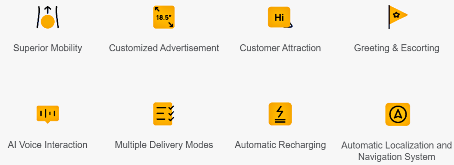 KettyBot can cruise in specific areas to provide customers with free snacks and drinks, accompanied by broadcasts about services and promotion