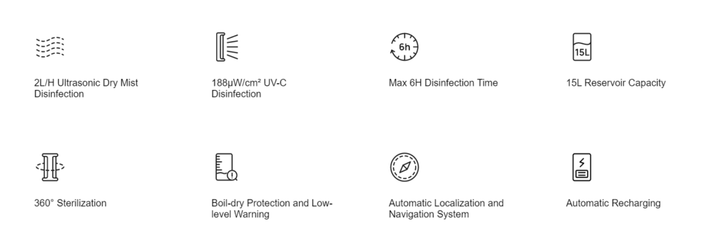 With a long lasting battery, Puductor 2 can disinfect 12-15 average sized rooms at once